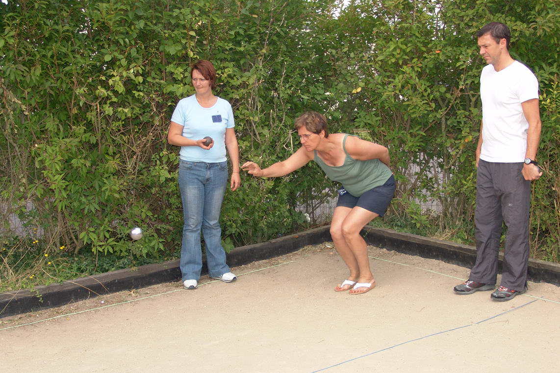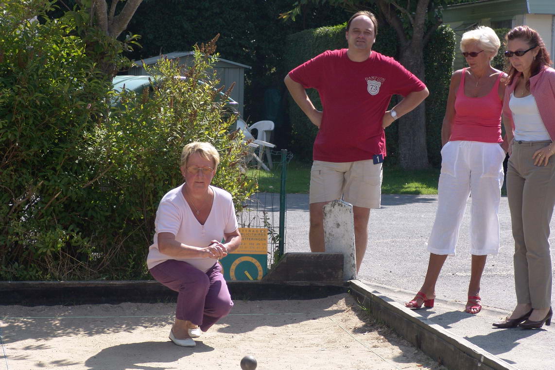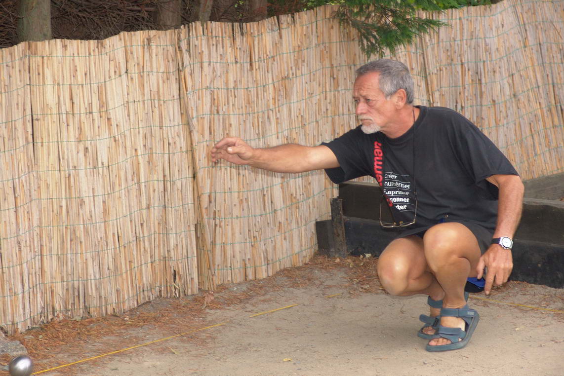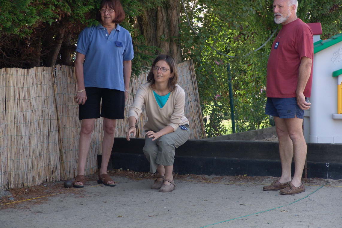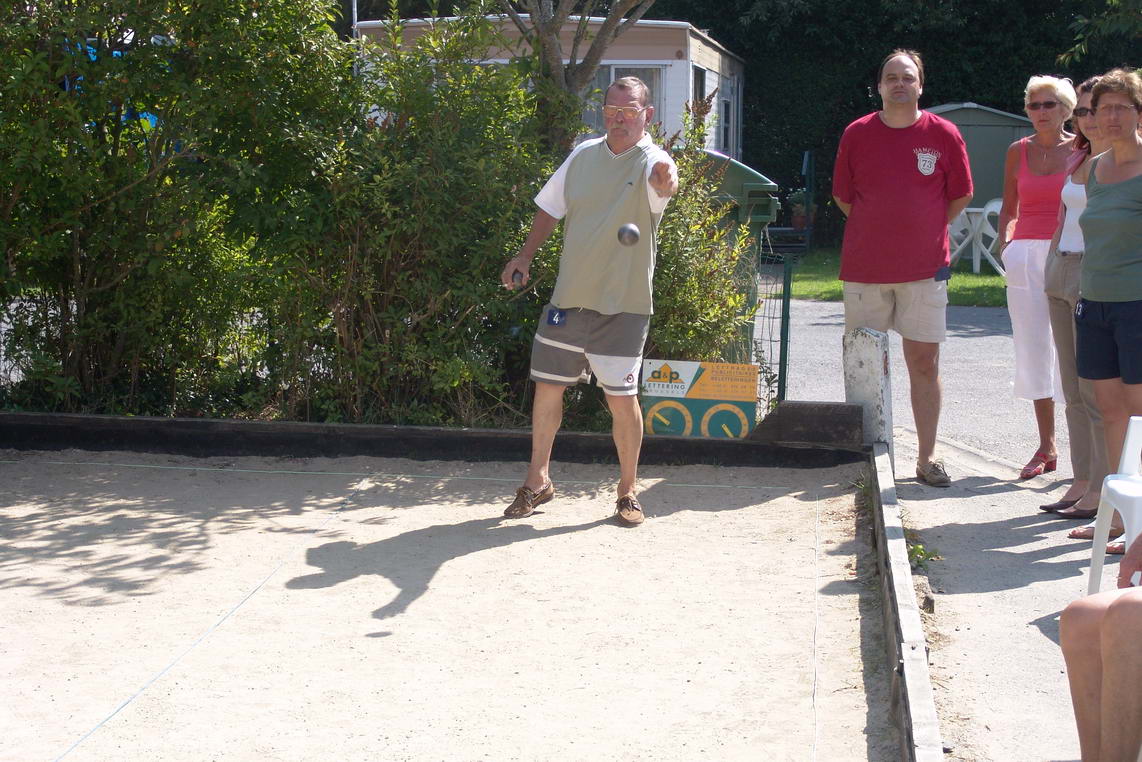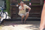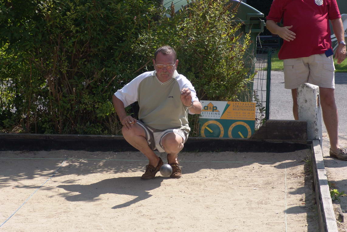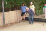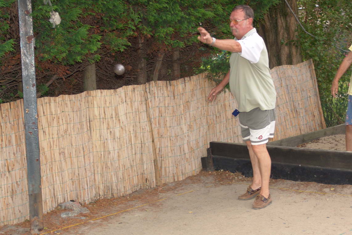 La pétanque est dès l'origine, l'activité, pourquoi pas le sport, le plus en vogue au club. En le tournoi du 13 août 2005 fut l'occasion de quelque images typiques. Notez les mimiques, les attitudes(c'est du sérieux!) et aussi les boules "en l'air". Cliquez sur les images pour les voir en "grand". |