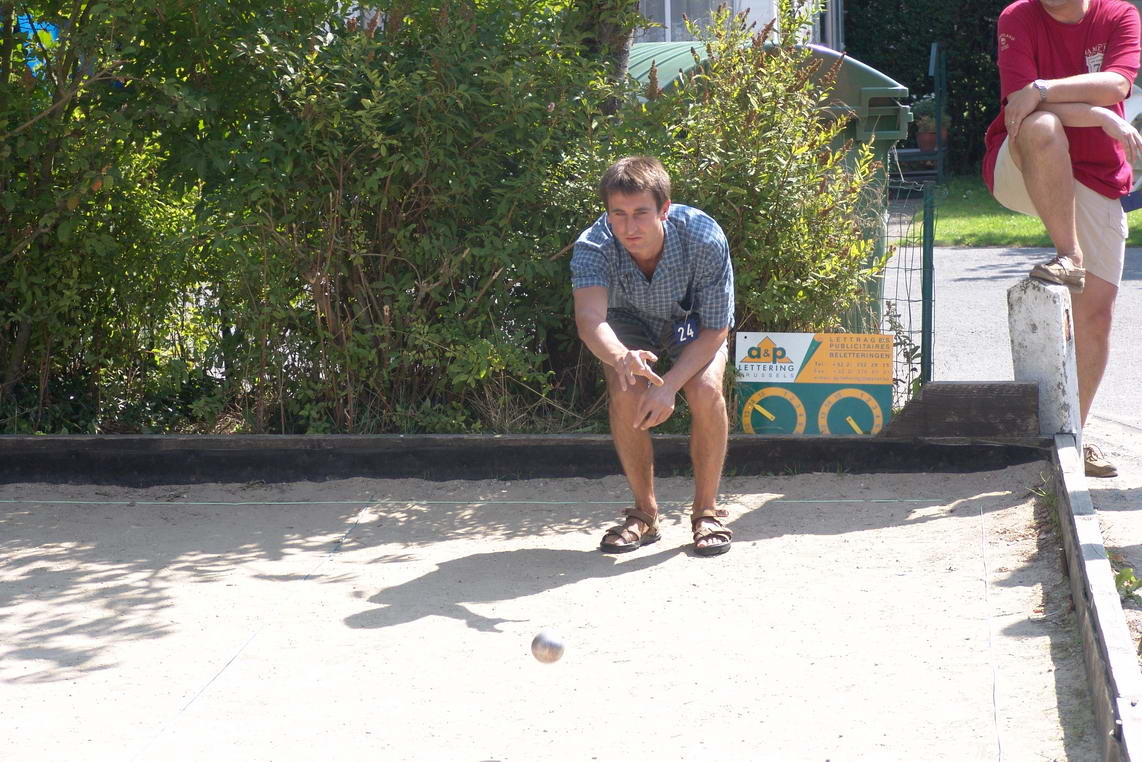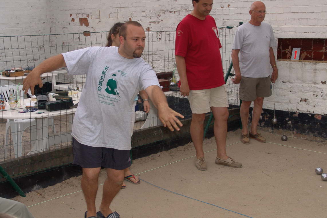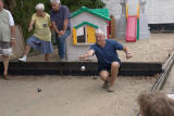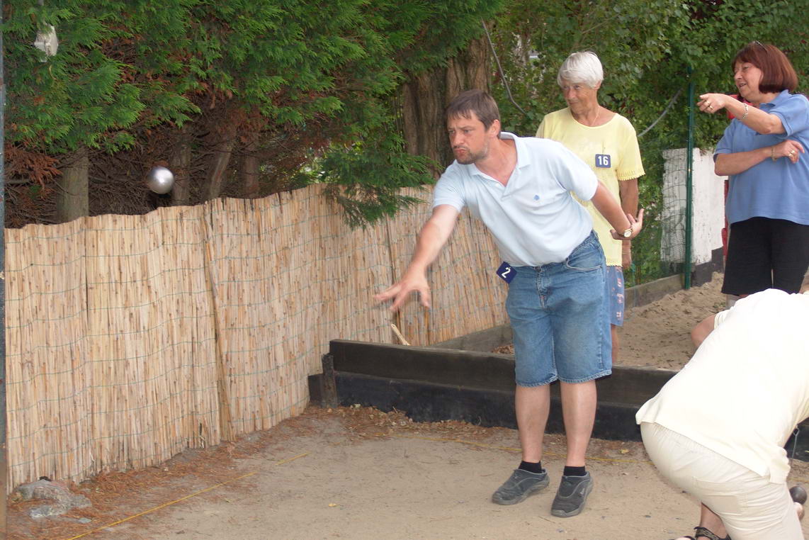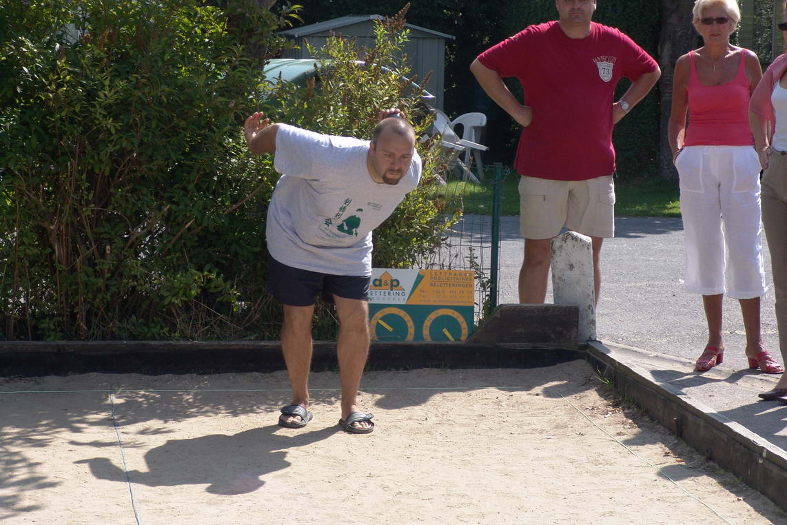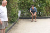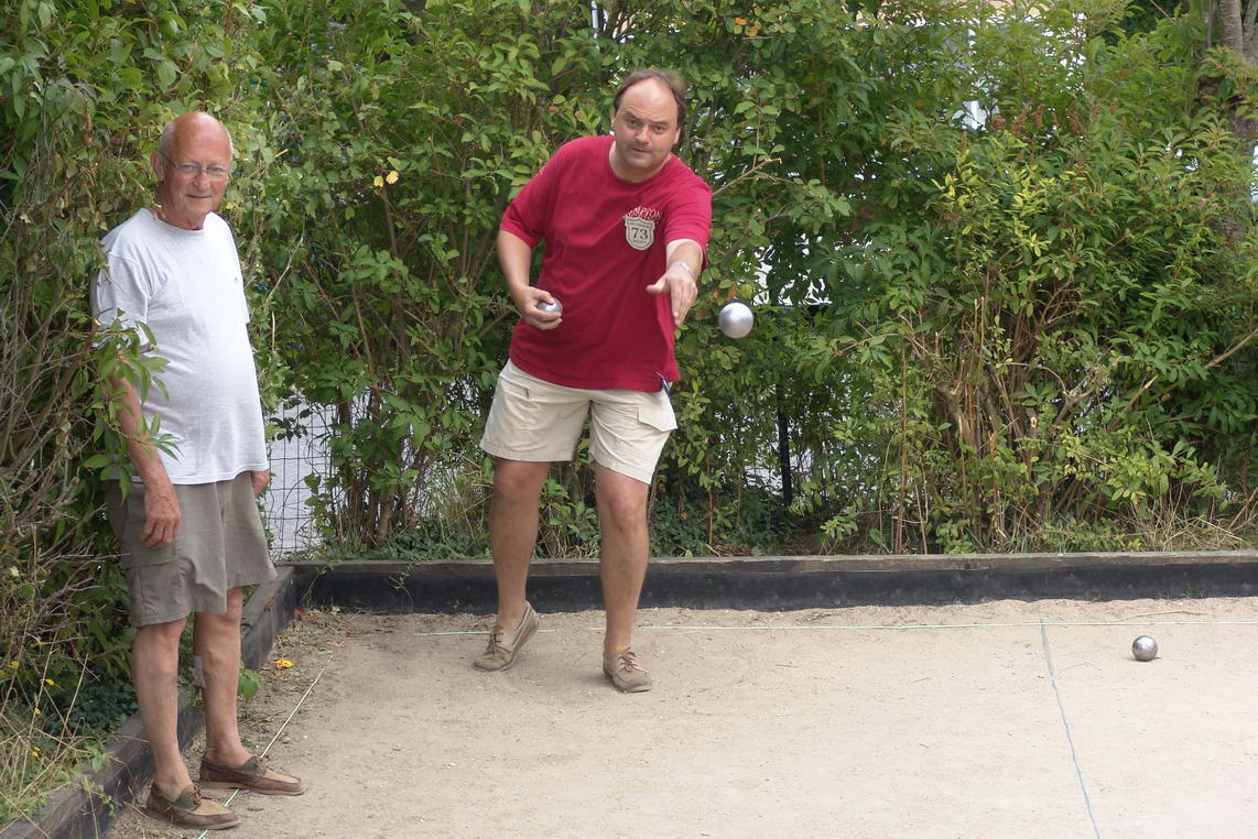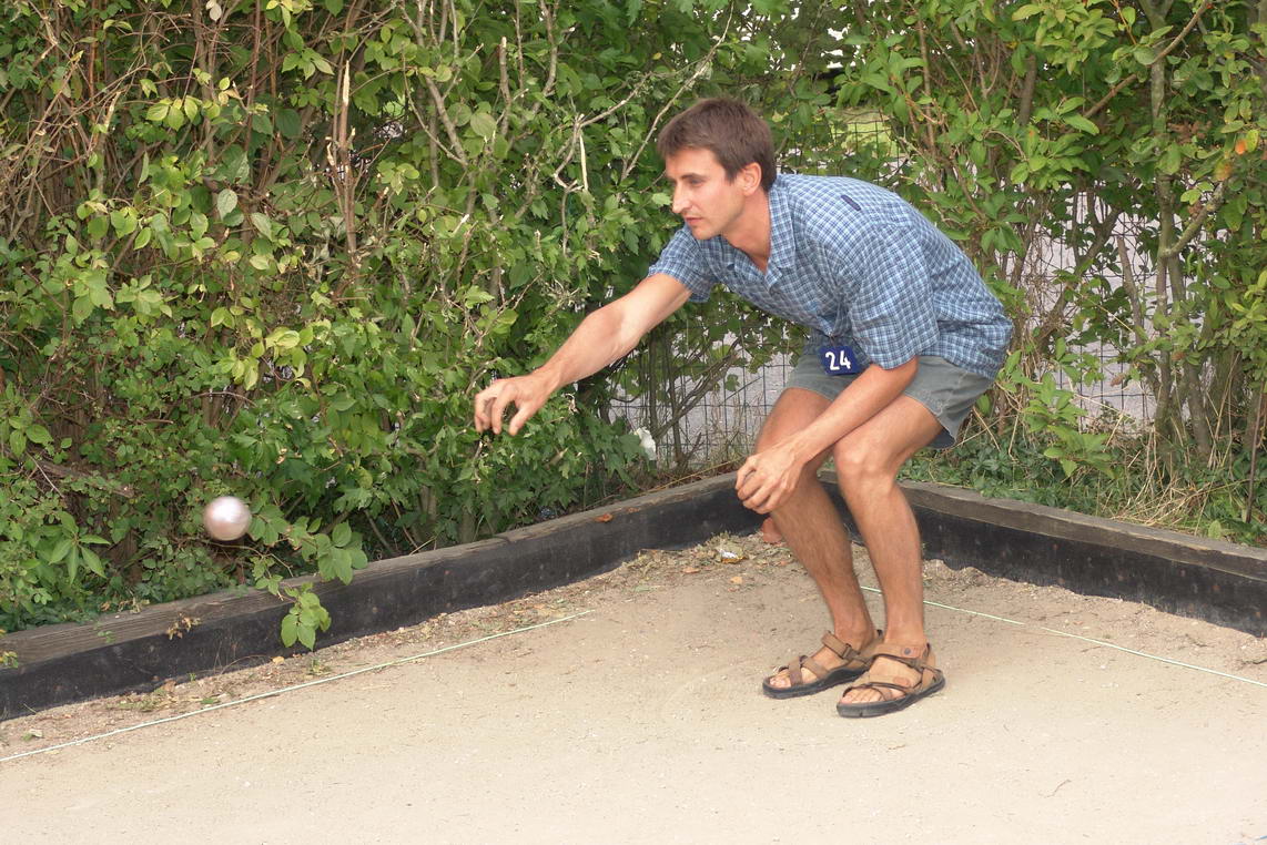 La pétanque est dès l'origine, l'activité, pourquoi pas le sport, le plus en vogue au club. En le tournoi du 13 août 2005 fut l'occasion de quelque images typiques. Notez les mimiques, les attitudes(c'est du sérieux!) et aussi les boules "en l'air". Cliquez sur les images pour les voir en "grand". |