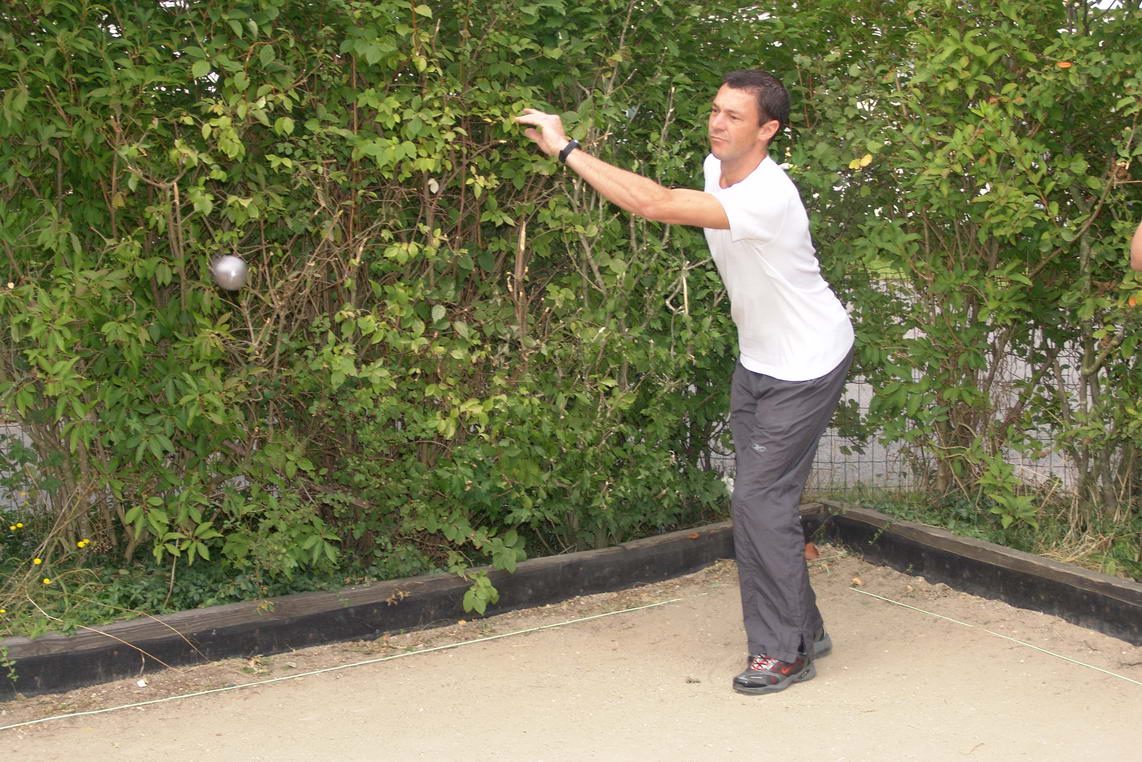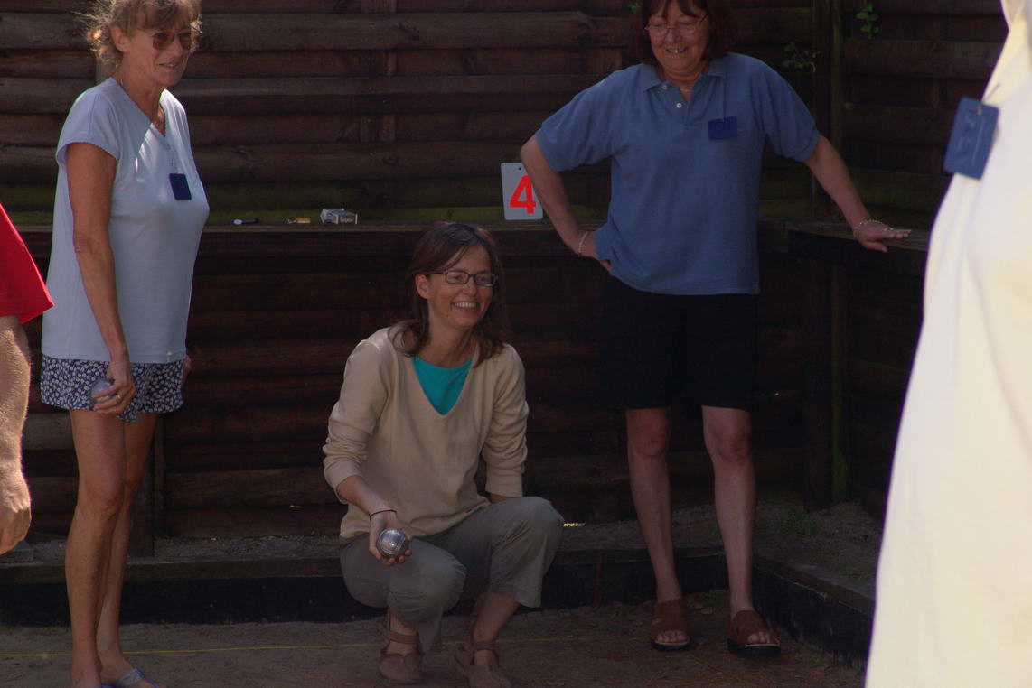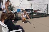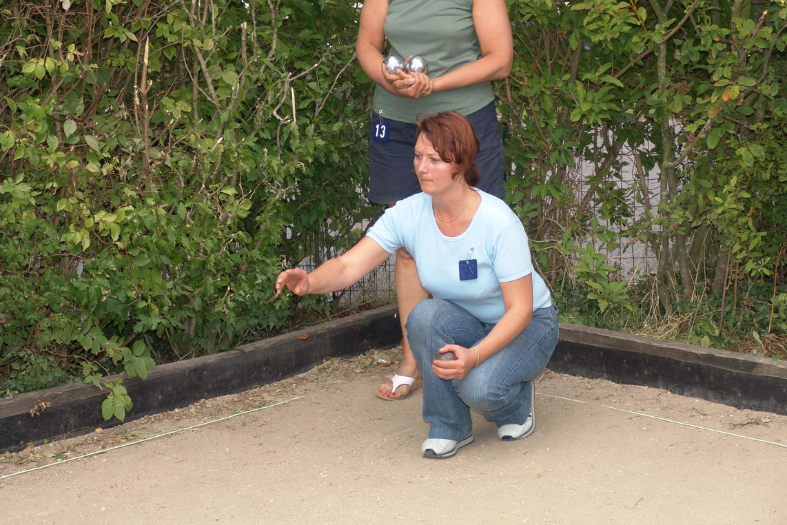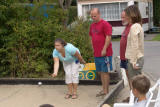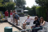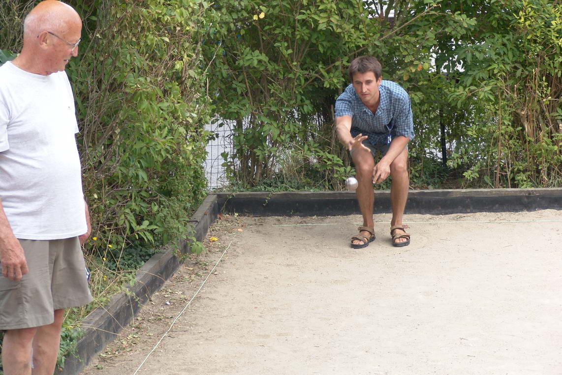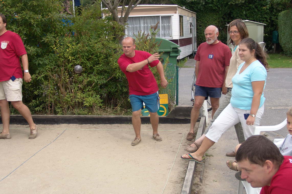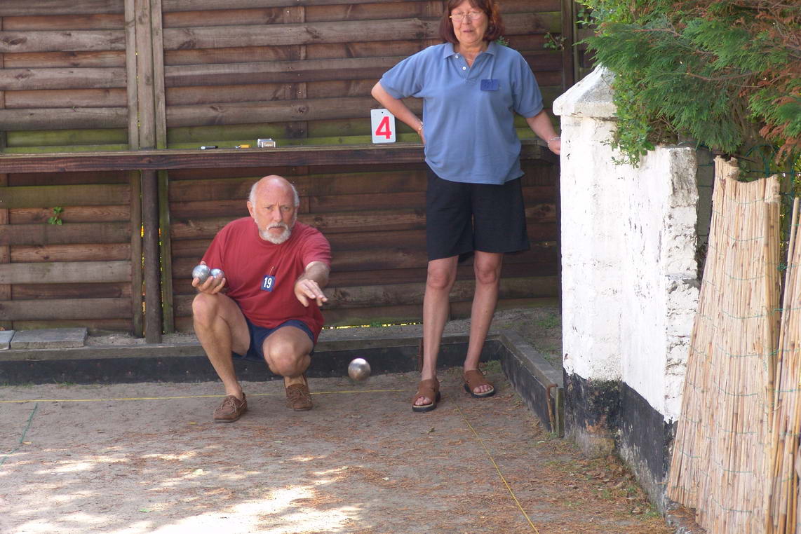 La pétanque est dès l'origine, l'activité, pourquoi pas le sport, le plus en vogue au club. En le tournoi du 13 août 2005 fut l'occasion de quelque images typiques. Notez les mimiques, les attitudes(c'est du sérieux!) et aussi les boules "en l'air". Cliquez sur les images pour les voir en "grand". |