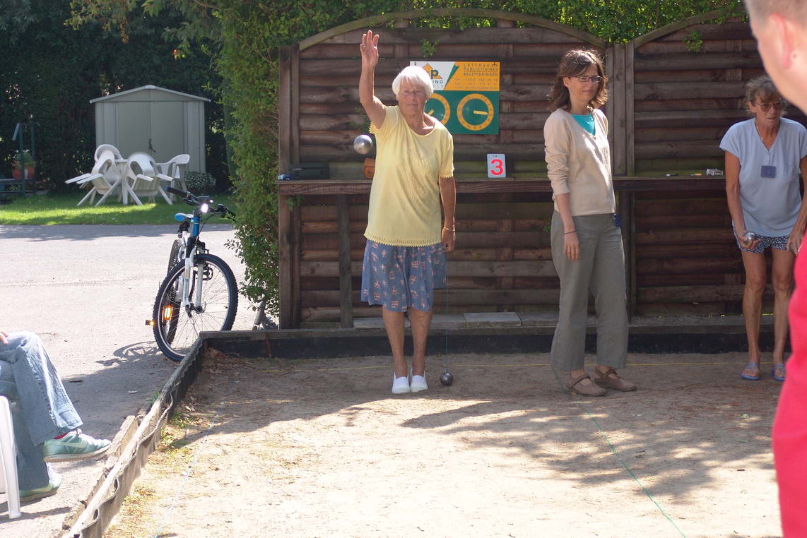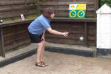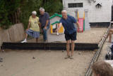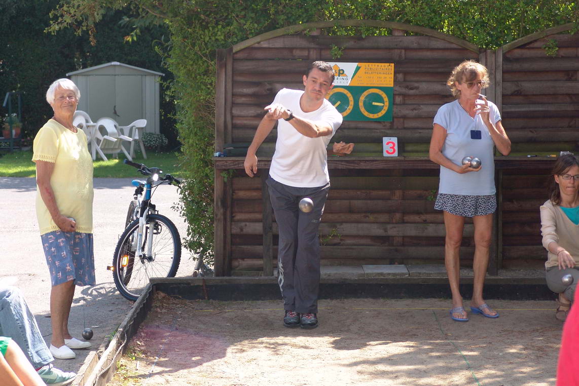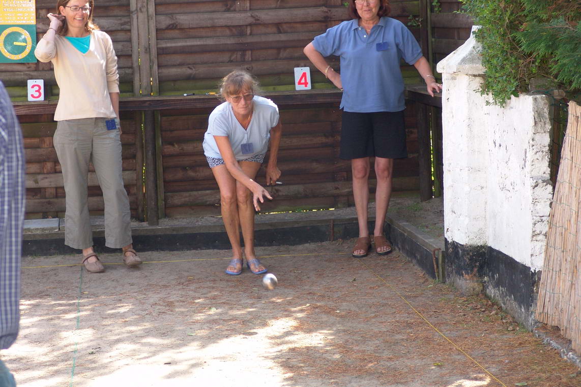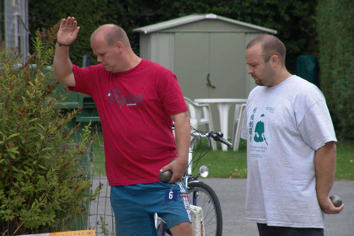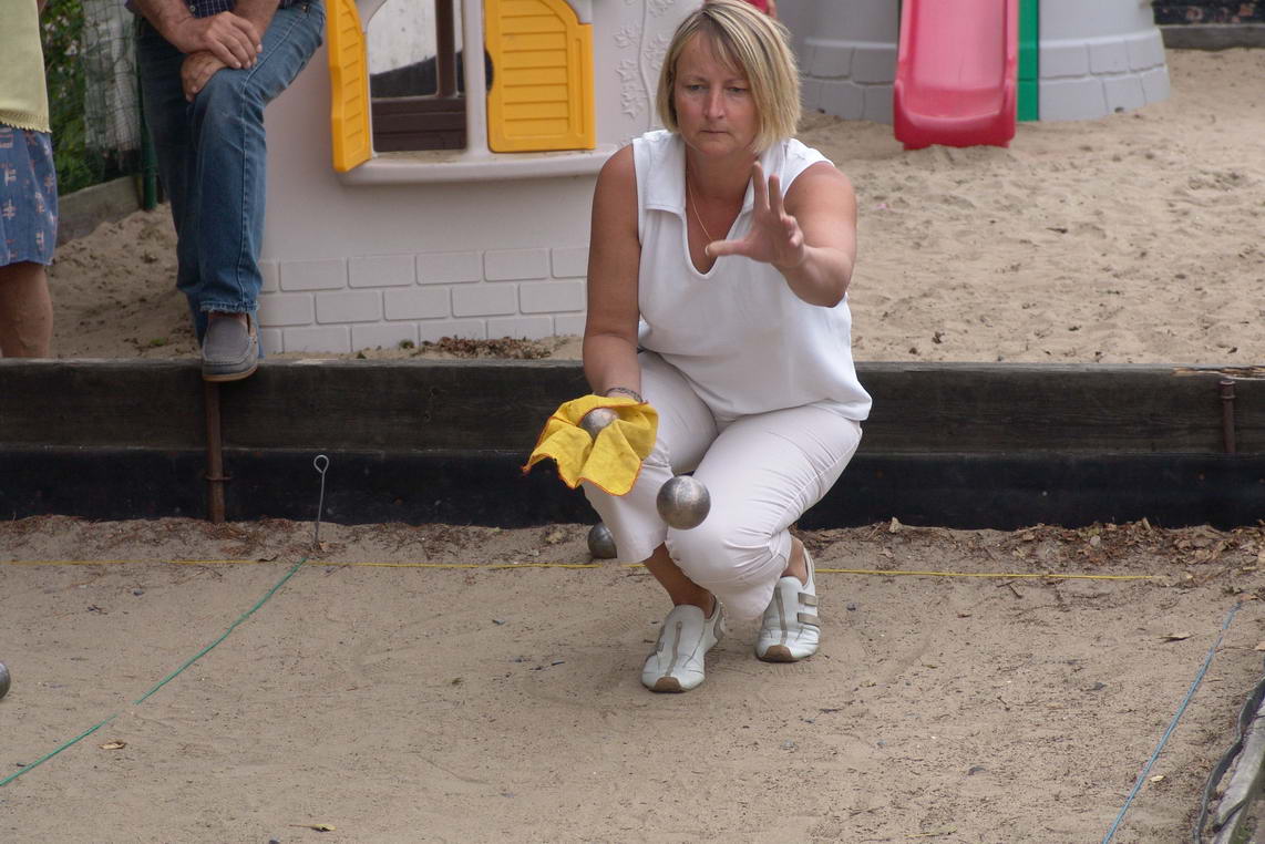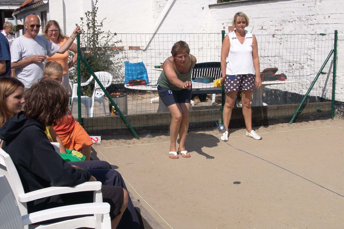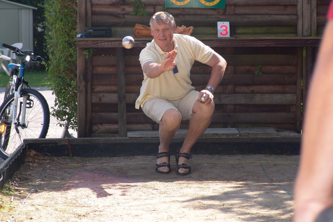 La pétanque est dès l'origine, l'activité, pourquoi pas le sport, le plus en vogue au club. En le tournoi du 13 août 2005 fut l'occasion de quelque images typiques. Notez les mimiques, les attitudes(c'est du sérieux!) et aussi les boules "en l'air". Cliquez sur les images pour les voir en "grand". |